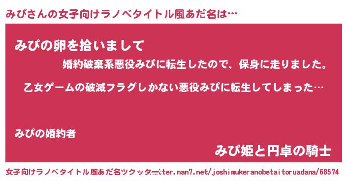 | 胡散臭い通販商品みたいなあだ名 | 『世界中を虜にした100年もののヴィンテージワイン…その名も「みぴ」』 |