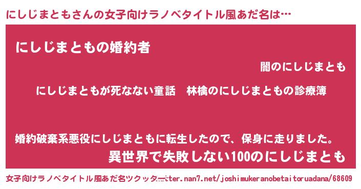 | 意味不明あだ名 | 『住所不定無職にしじまとも(71歳)』 |