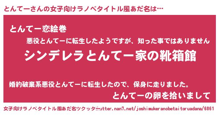| 男性向けラノベタイトル風あだ名 | 『緋弾のトンテー』『トンテースレイヤー』 |