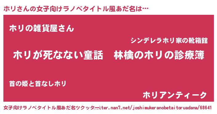 | 男性向けラノベタイトル風あだ名 | 『魔弾の王とホリ』『魔法科高校のホリ』 |