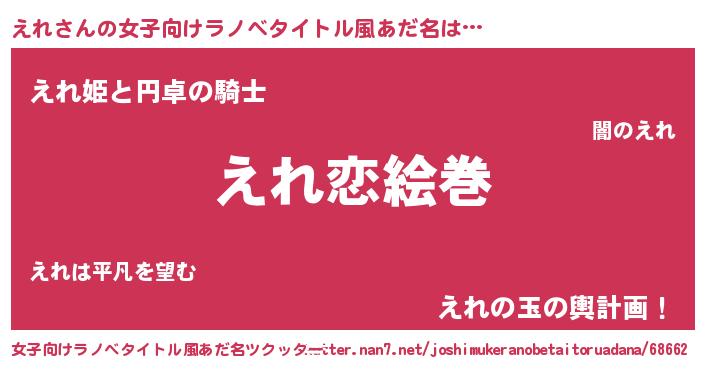 | 男性向けラノベタイトル風あだ名 | 『ノーゲーム・ノーエレ』『えれの憂鬱』 |
