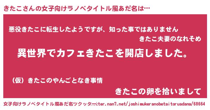 | 男性向けラノベタイトル風あだ名 | 『誰もが恐れるあのきたこが、ぼくの専属メイドになるようです。』 |