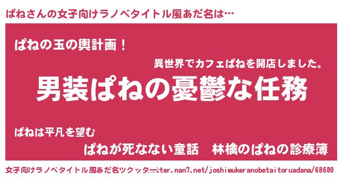 | 男性向けラノベタイトル風あだ名 | 『うちのぱねが世界を掌握している!』 |