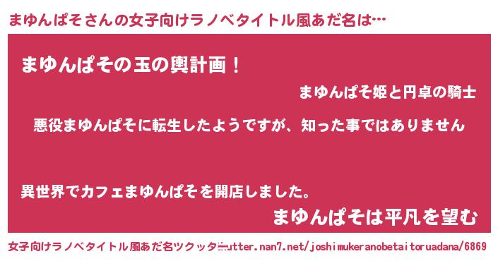 | 男性向けラノベタイトル風あだ名 | 『この素晴らしい世界にまゆんぱそを!』 |