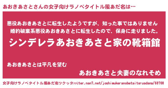 | 意味不明あだ名 | 『住所不定無職あおきあさと(59歳)』 |