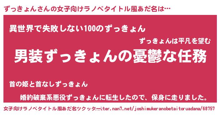 | ヒーロー風カッコイイあだ名 | 『ネオズッキョン』『暗黒騎士ズッ』 |