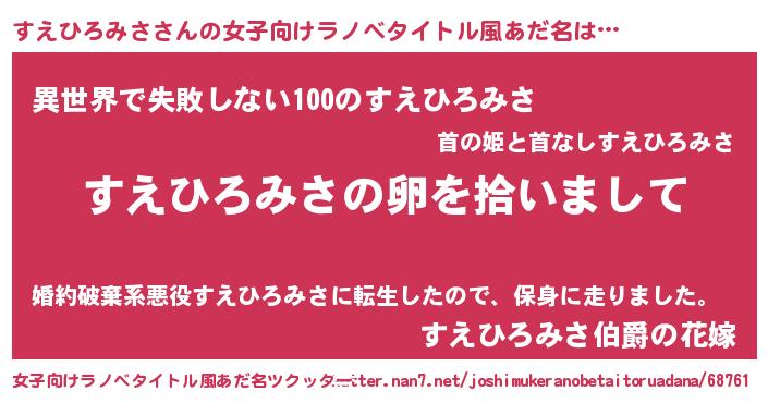 | 男性向けラノベタイトル風あだ名 | 『すえひろみさの嫁は女の子じゃないと思った?』 |