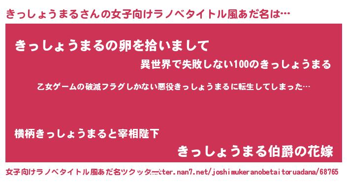 | 意味不明あだ名 | 『住所不定無職きっしょうまる(6歳)』 |