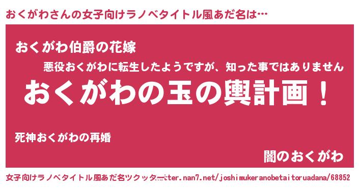 | 男性向けラノベタイトル風あだ名 | 『転生したらおくがわだった件』 |