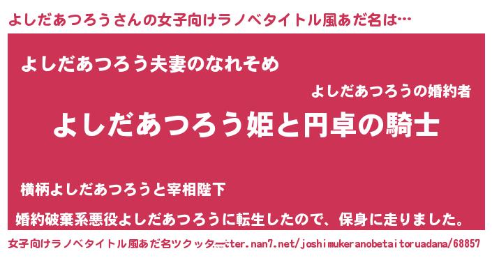 | 男性向けラノベタイトル風あだ名 | 『よしだあつろうの憂鬱』 |