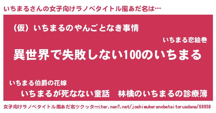 | 男性向けラノベタイトル風あだ名 | 『いちまるという概念が存在しない退屈な世界 』 |