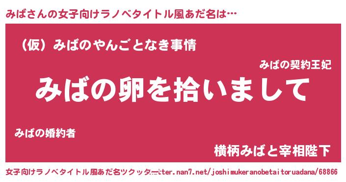| 男性向けラノベタイトル風あだ名 | 『みばの嫁は女の子じゃないと思った?』 |