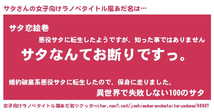 | 男性向けラノベタイトル風あだ名 | 『魔法科高校のサタ』『サタスレイヤー』 |