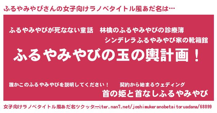 | 男性向けラノベタイトル風あだ名 | 『ふるやみやび~年齢イコール彼女いない歴の魔法使い~』 |