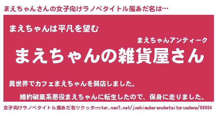 | 男性向けラノベタイトル風あだ名 | 『やはりまえちゃんの青春ラブコメはまちがっている 』 |