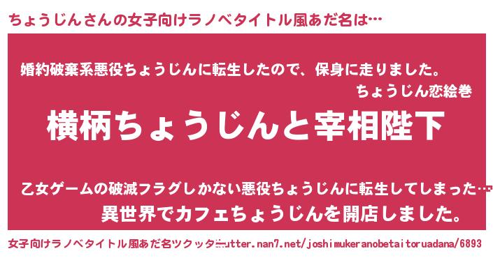 | ヒーロー風カッコイイあだ名 | 『ネオチョウジン』『仮面チョダー』 |