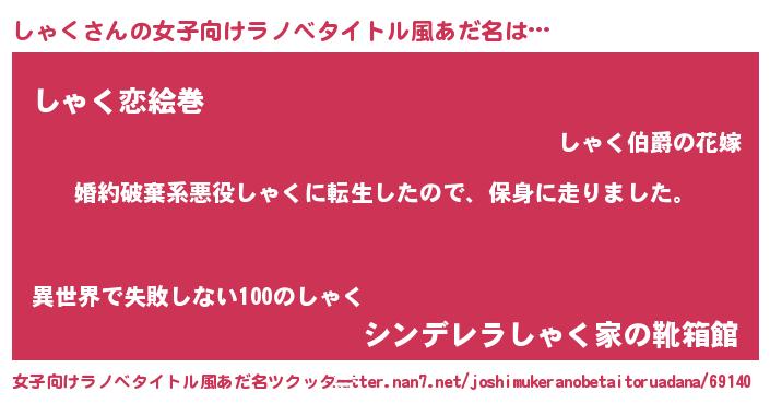 | 男性向けラノベタイトル風あだ名 | 『転生したらしゃくだった件』 |