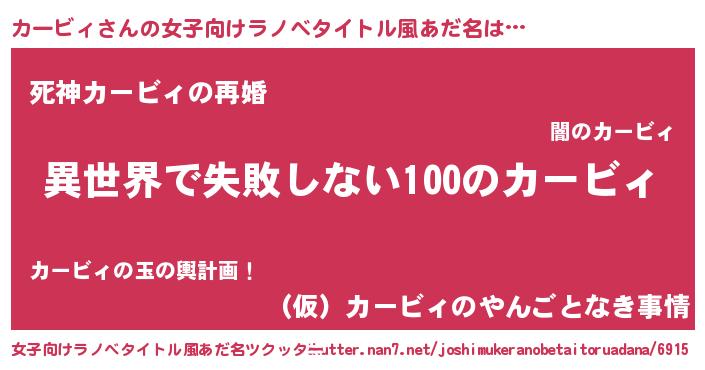 カービィさんの女子向けラノベタイトル風あだ名は… 『異世界で失敗しない100のカービィ』『死神カービィの再婚』『(仮)カービィのやんごとなき事情』 ツクッター #女子向けラノベタイトル風あだ名ツクッター http://tkutter.nan7.net/joshimukeranobetaitoruadana/6915/