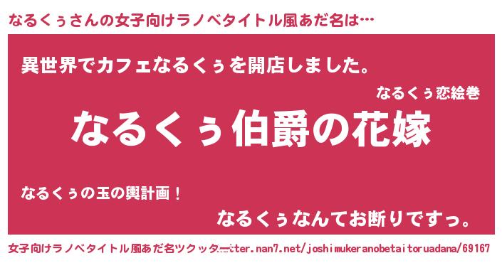 | 欧米人風あだ名 | 『なるくぅクリステル』 |