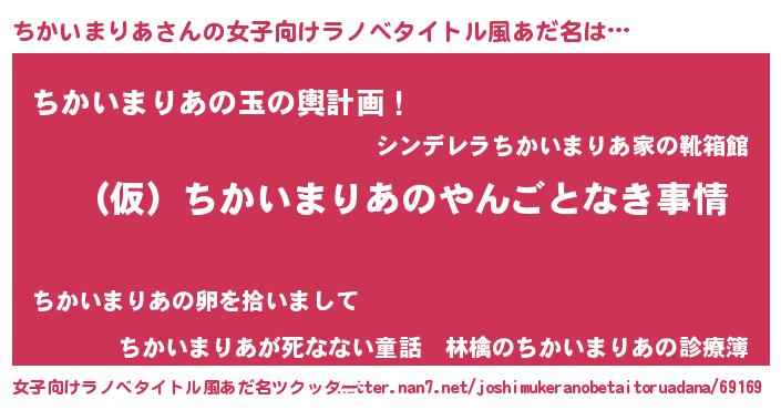 | 恥ずかしいあだ名 | 『プリティーちかいまりあ』『ちかっちょ』 |