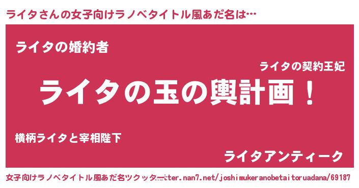 | 恥ずかしいあだ名 | 『ライっちょ』『ライタデラックス』 |