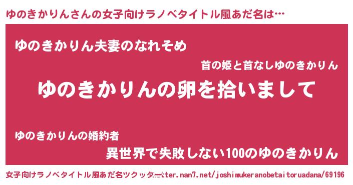 | 男性向けラノベタイトル風あだ名 | 『ダンジョンにゆのきかりんを求めるのは間違っているだろうか』 |