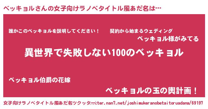 | 胡散臭い通販商品みたいなあだ名 | 『絶対に幸福をもたらす健康食品…その名も「ベッキョル」』 |