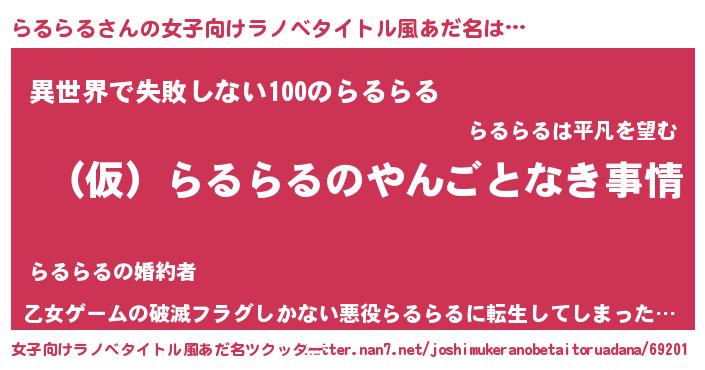 | ヘコむあだ名 | 『らるふぇ~』『らるらる(笑)』 |