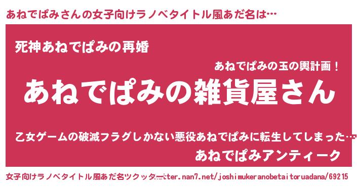 | ファンタジー風あだ名 | 『エターナルアネデパミー』『ゼアネトゥ』 |
