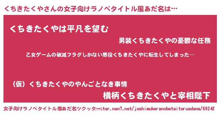| 意味不明あだ名 | 『住所不定無職くちきたくや(68歳)』 |