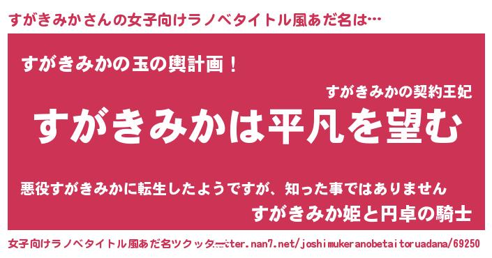 | 男性向けラノベタイトル風あだ名 | 『ダンジョンにすがきみかを求めるのは間違っているだろうか』 |