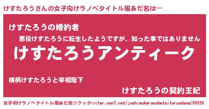 | 意味不明あだ名 | 『自称けすたろう』『永久保存けすたろう』 |