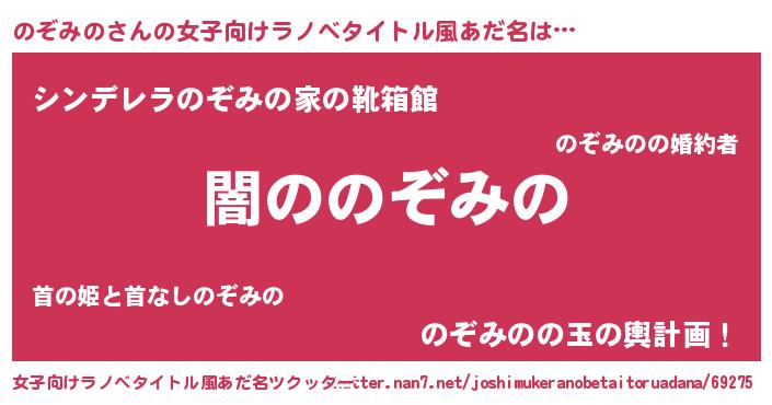| 男性向けラノベタイトル風あだ名 | 『Re:のぞみのから始める異世界生活』 |
