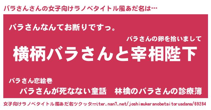 | 男性向けラノベタイトル風あだ名 | 『バラさんに滅ぼされるだけの簡単なお仕事です』 |