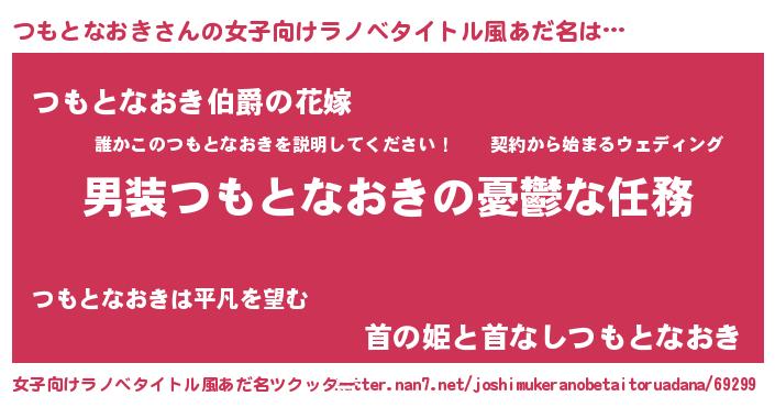 | 胡散臭い通販商品みたいなあだ名 | 『運命の人と巡り会える高級そうな絵画…その名も「つもとなおき」』 |