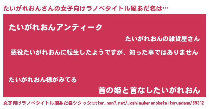 | 男性向けラノベタイトル風あだ名 | 『この素晴らしい世界にたいがれおんを!』 |
