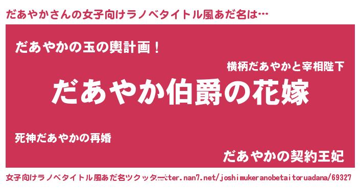 | 意味不明あだ名 | 『だあやかフォーエバー』 |