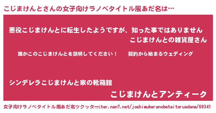 | 胡散臭い通販商品みたいなあだ名 | 『億万長者になれるブレスレット…その名も「こじまけんと」』 |