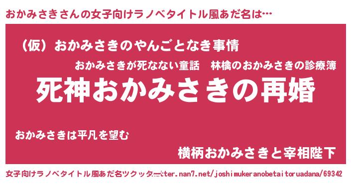 | 男性向けラノベタイトル風あだ名 | 『ノーゲーム・ノーオカミサキ』 |