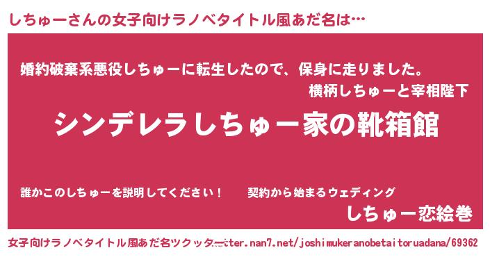 | 男性向けラノベタイトル風あだ名 | 『冴えないしちゅーの育てかた』 |