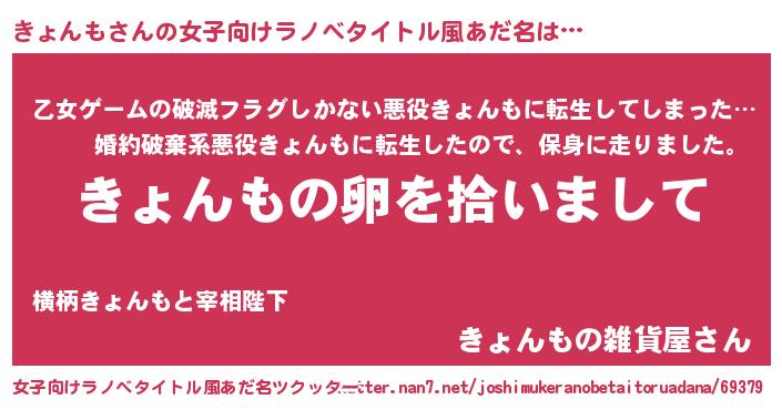 | 男性向けラノベタイトル風あだ名 | 『きょんもの嫁は女の子じゃないと思った?』 |
