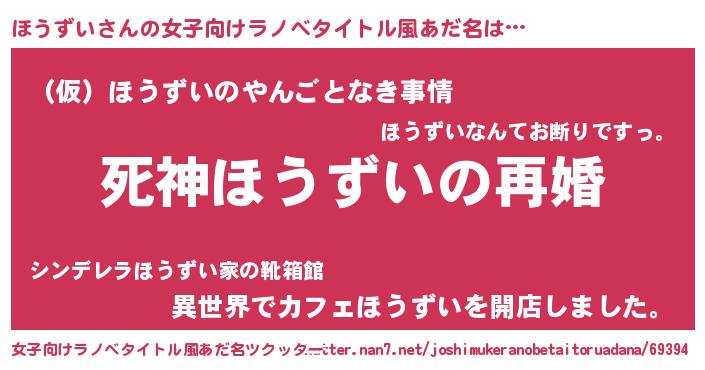 | 男性向けラノベタイトル風あだ名 | 『ノーゲーム・ノーホウズイ』 |