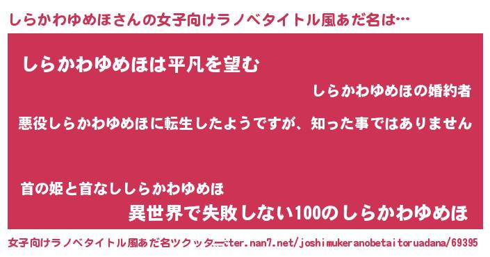 | ヘコむあだ名 | 『しらぷりん』『しらかわゆめほ(笑)』 |