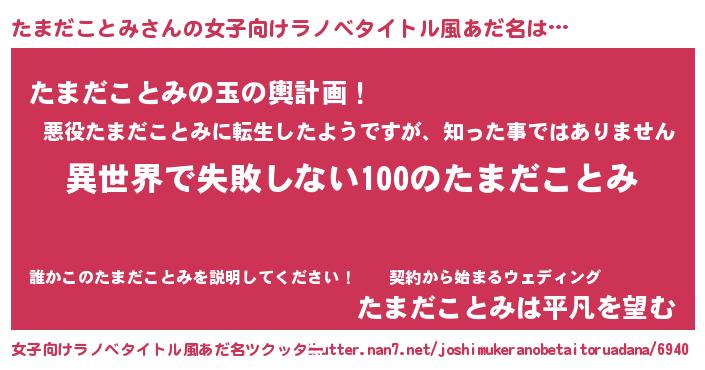 | ヘコむあだ名 | 『たまだことみ(笑)』『たまを』 |