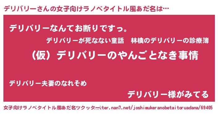 | 男性向けラノベタイトル風あだ名 | 『デリバリーの憂鬱』 |