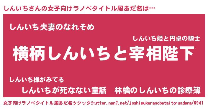 | 男性向けラノベタイトル風あだ名 | 『しんいちに滅ぼされるだけの簡単なお仕事です』 |