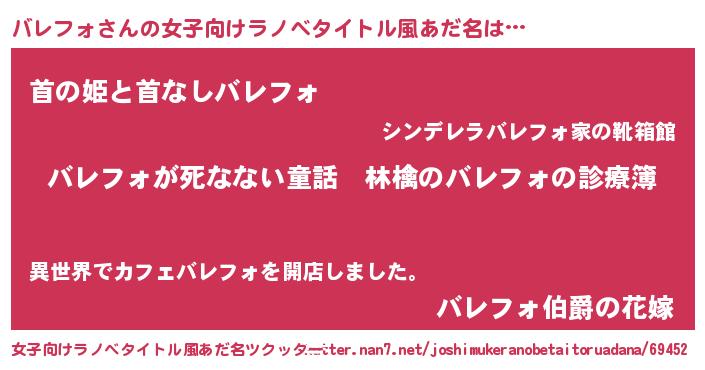 | 意味不明あだ名 | 『住所不定無職バレフォ(41歳)』 |