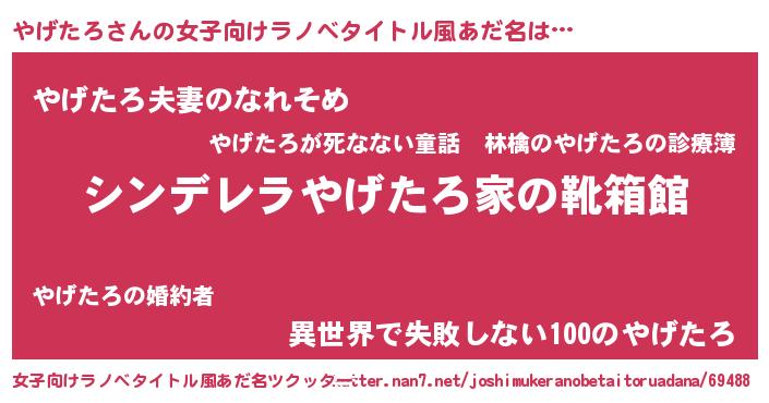| 男性向けラノベタイトル風あだ名 | 『緋弾のヤゲタロ』『魔弾の王とやげたろ』 |