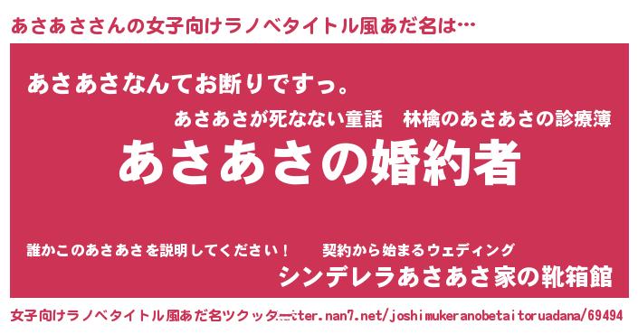 | 男性向けラノベタイトル風あだ名 | 『うちの娘の為ならば、俺はもしかしたらあさあさも倒せるかもしれない。』 |
