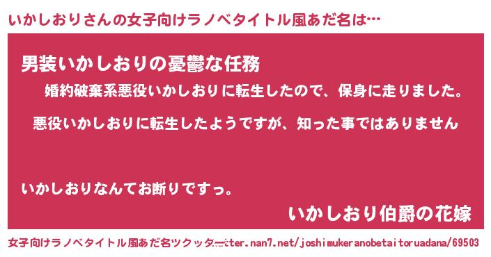 | 男性向けラノベタイトル風あだ名 | 『この素晴らしい世界にいかしおりを!』 |